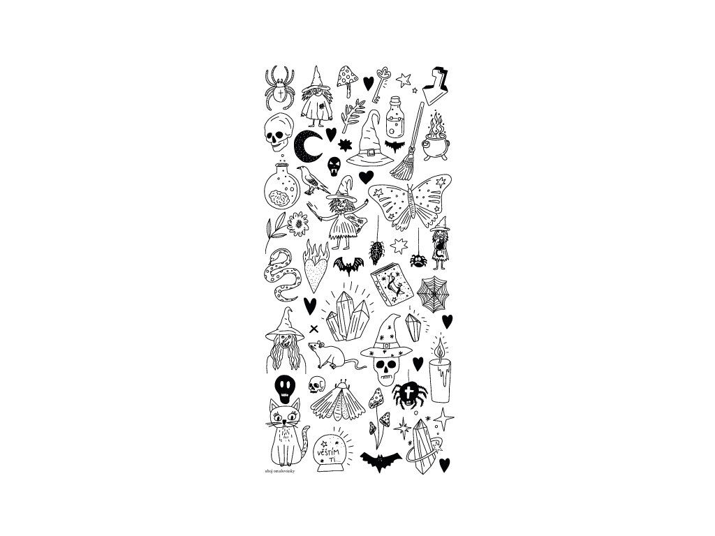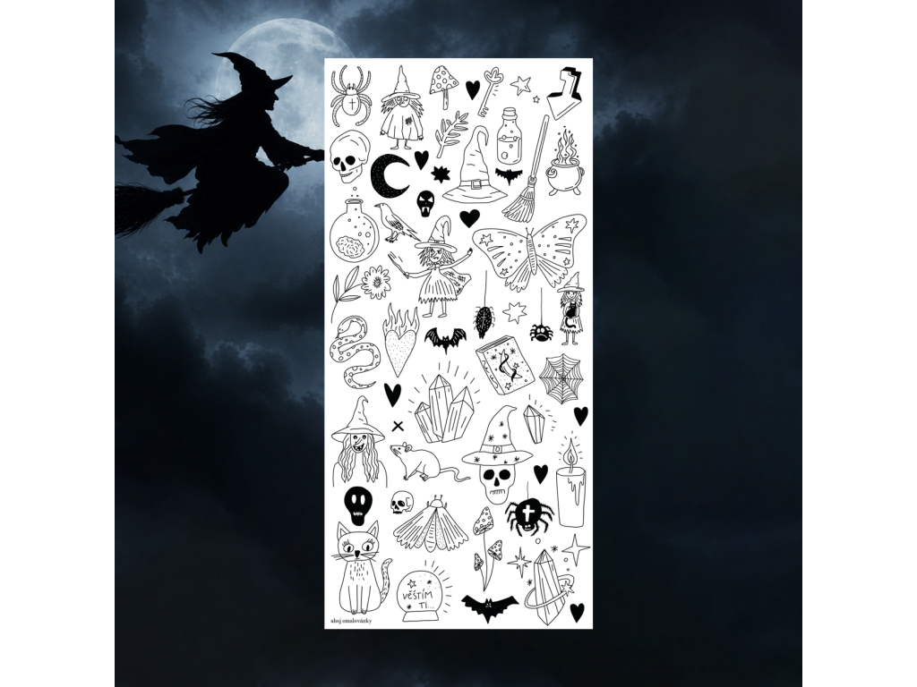 Vytvoř si své vlastní magické znamení! Čarodějnické tetovačky, které si děti samy vybarví a pak jednoduše nanesou na kůži. Ideální doplněk k pálení čarodějnic nebo na tvořivou oslavu.