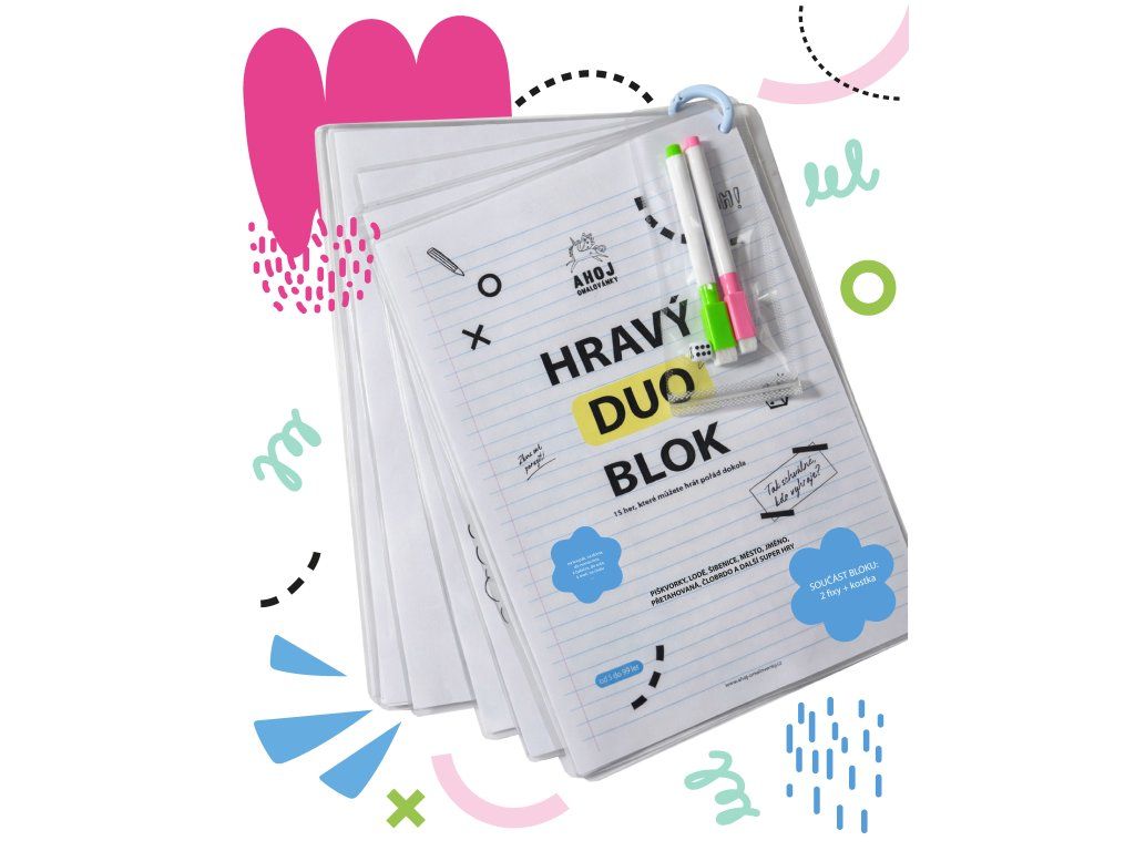 HRAVÝ DUO BLOK je plný her, které můžete hrát znovu a znovu – stačí fixy, kostka a chuť si hrát.