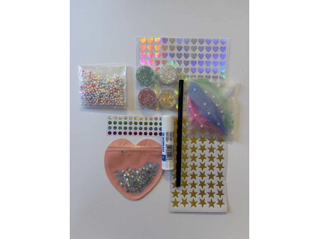 Bomba pro malé tvůrce! 🎨✨ Kompletní sada na dotvoření plakátové omalovánky obsahuje samolepky, hvězdičky, lepidlo, barevnou tužku, třpytky, pírka a další kouzelné doplňky. Výsledek? Barevný, třpytivý plakát, na který budou děti pyšné! Každá sada je trochu jiná – nechte se překvapit, všechny jsou bombastické. Tip: pírka se dají i rozstříhat! 💛