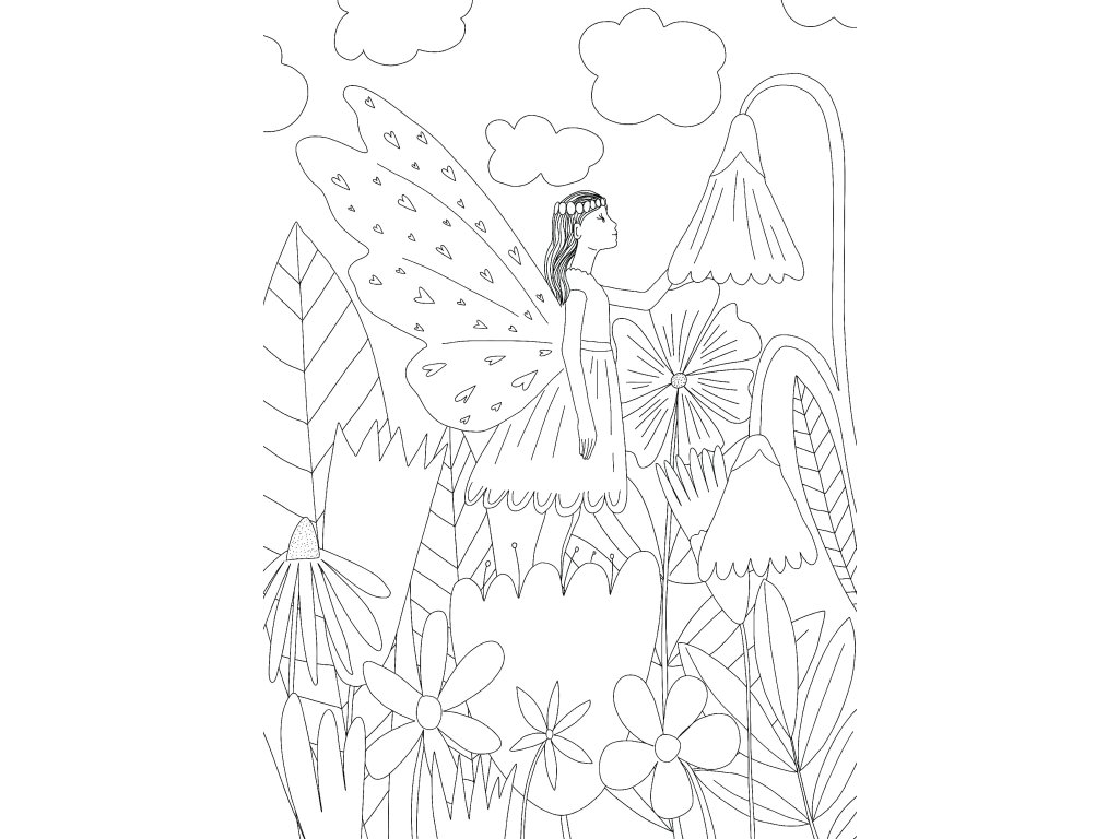 Pohádková omalovánka s vílí holčičkou mezi květinami! Kouzelný svět fantazie, který děti vtáhne do tichého rozjímání i tvořivé zábavy. Na výběr ze tří velikostí a tisk na kvalitní pevný papír.