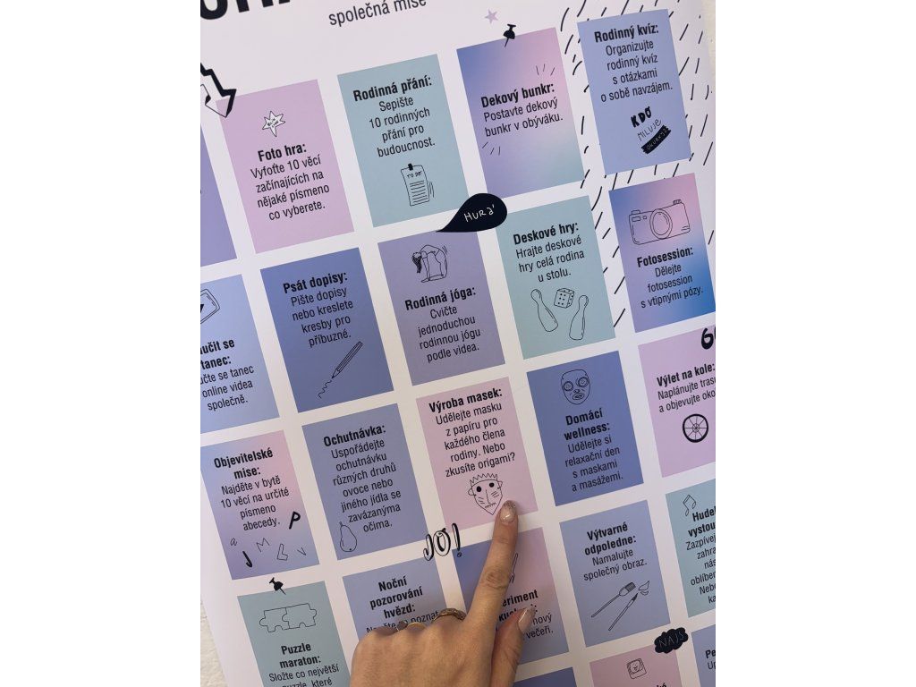 Rodinná Challenge - interaktivní plakát s 30 aktivitami pro celou rodinu. Dostupný v barevné i černobílé verzi, tisk na kvalitní 180g papír. Posílí rodinné vztahy zábavnou formou.
