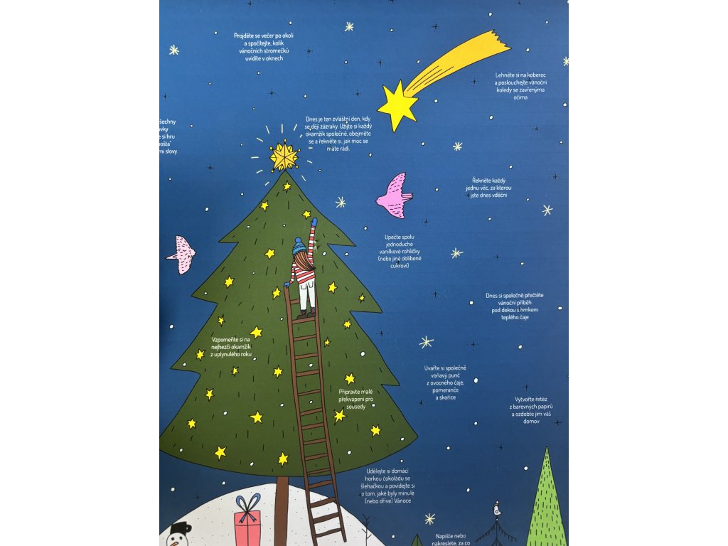 Co vás čeká pod stíracími políčky? Každý den adventu odhalíte jednu aktivitu, která vás povede ke zklidnění, společnému tvoření nebo zamyšlení. Všechny úkoly jsou navrženy tak, aby je zvládli rodiče s dětmi různého věku a aby vám pomohly vytvořit nezapomenutelné adventní okamžiky.
